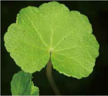 一年生匍匐性草本,莖及葉柄密被紫色短柔毛至漸脫落。單葉,互生。葉柄長1-8 cmm。托葉1,半圓形,透明膜質,偶泛紫。葉紙質,近圓形或腎形,兩面綠色,長1.5-2.5 cm,寬1.5-4 cm,葉表疏被短柔毛,葉背被柔毛;先端鈍;基部心形;葉緣不規則淺裂,再鈍鋸齒裂;掌狀脈,基出5-8脈。