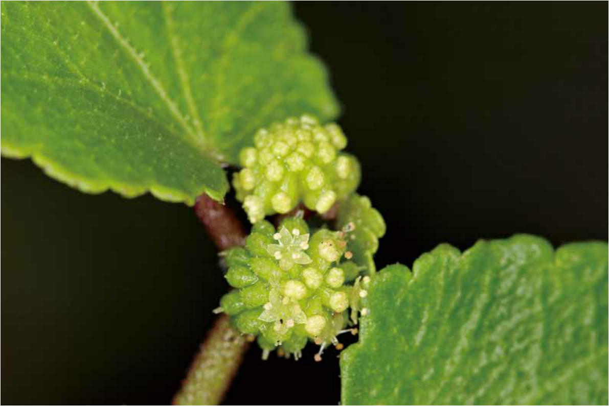 繖形花序,與葉對生。花梗無。花苞扁球形,淡綠色。花輪狀,徑約1.6 mm。花被裂片5,卵狀三角形,淡綠色,半透明。雄蕊5枚;花絲極短;花藥2室,藥米黃色。子房扁球形;花柱無;柱頭短2叉;子房2室,胚珠每室1枚。 胞果,扁球形。 引證標本:新北市平溪區國家藥園A步道Hsu 20757(TAIE) 典籍記載:全草味苦辛性涼,有活血止血、清肺熱、散血熱之效,主治跌打、感冒、咳嗽痰血、痢疾、泄瀉、痛經、月經不調、腫毒、痔瘡、外傷出血等。《台灣藥用植物資源名錄350》 《中華本草》 |